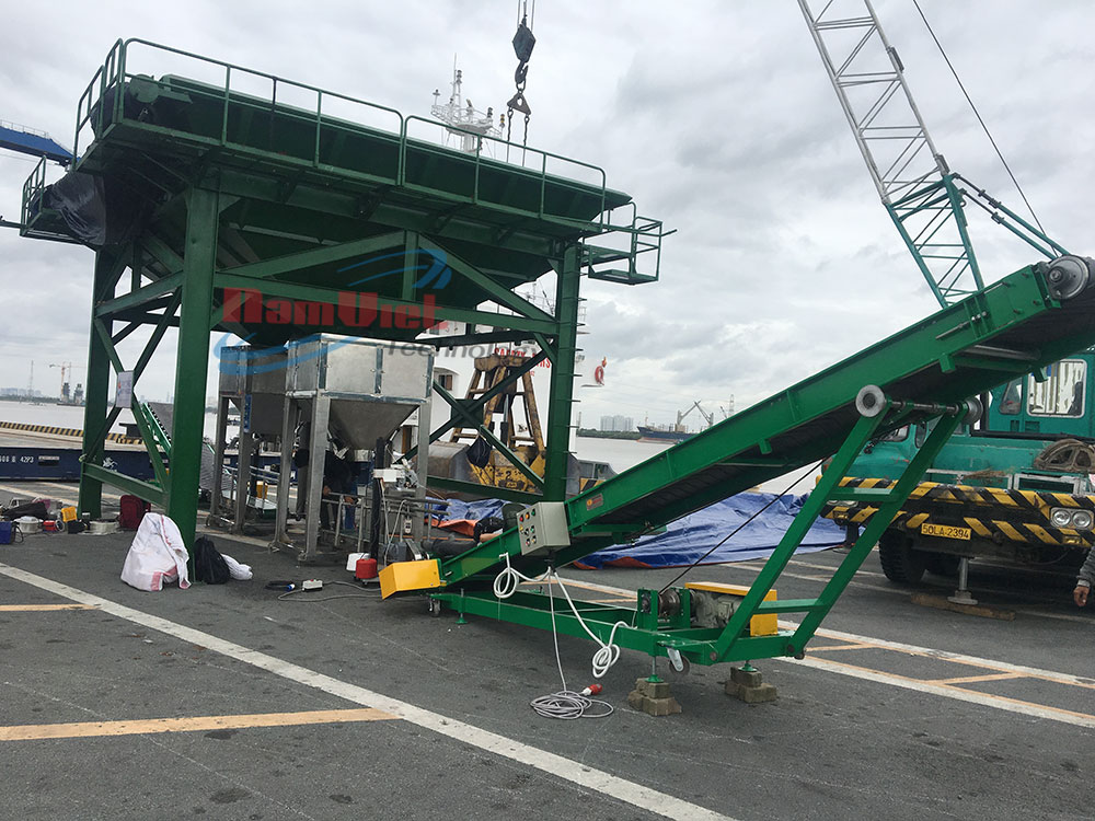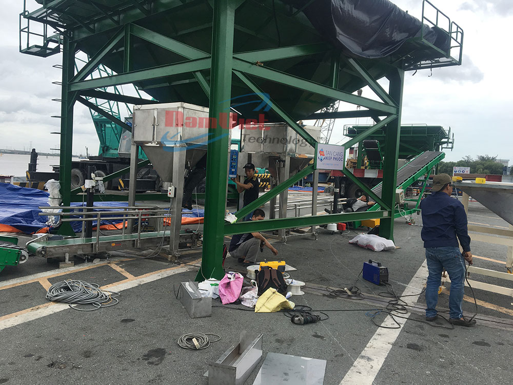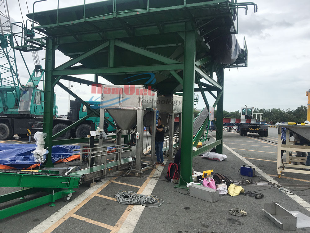 Sau khảo sát kỹ lưỡng hiện trường tại Tân Cảng Hiệp Phước, đội ngũ kỹ thuật Nam Việt đã thiết kế – chế tạo – lắp đặt hoàn chỉnh một hệ thống máy đóng bao phân bón công suất cao, đáp ứng đầy đủ tiêu chí cảng đặt ra.